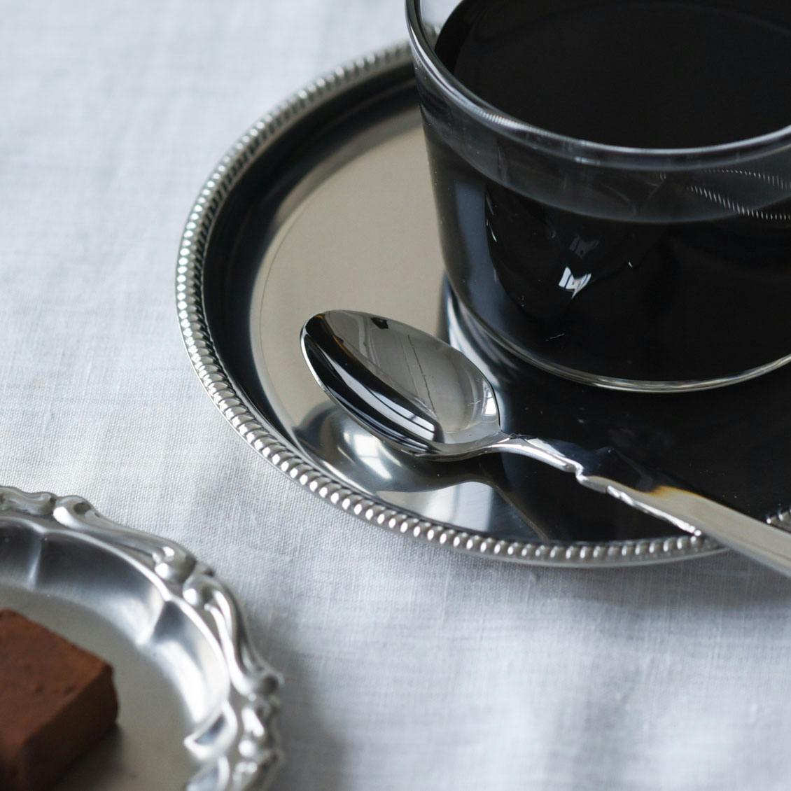 スプーンは、ティースプーンやデザートスプーンとして使える大きさ。持ち手の厚さは1mmととても薄いですが、緩やかにカーブして持ちやすいです。