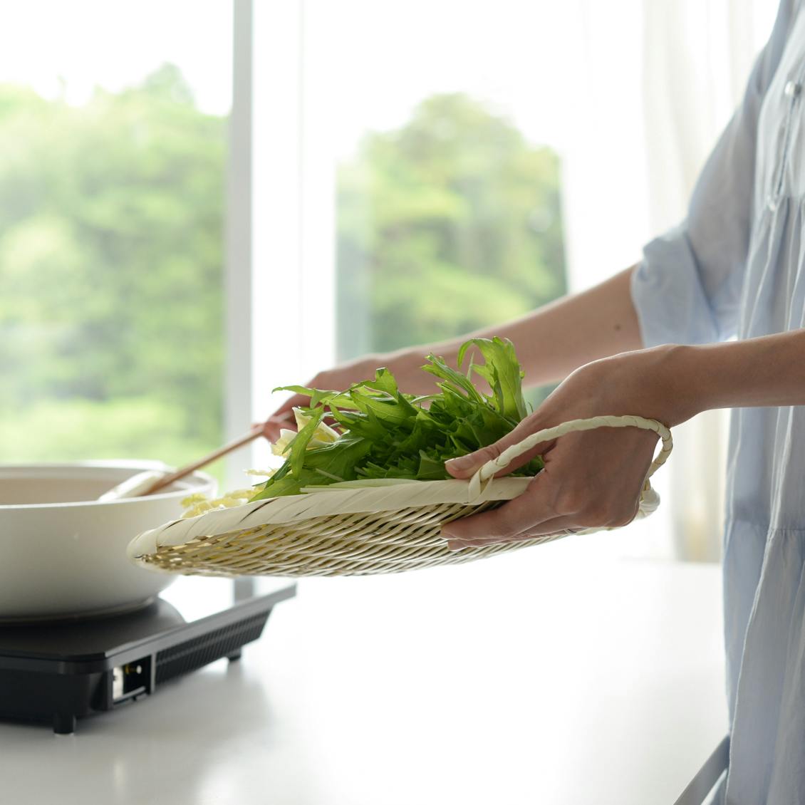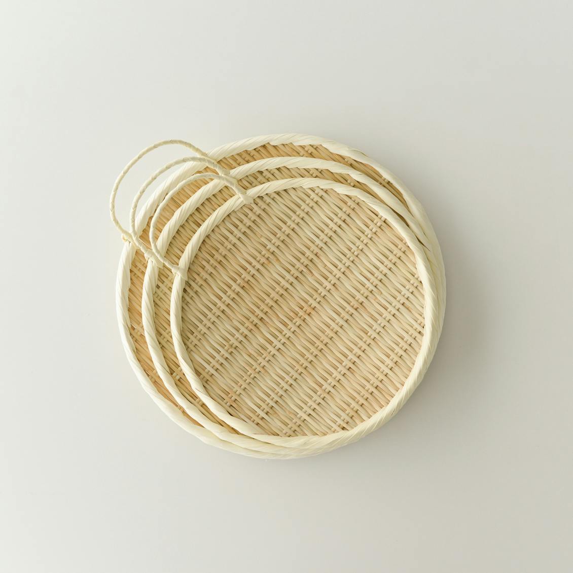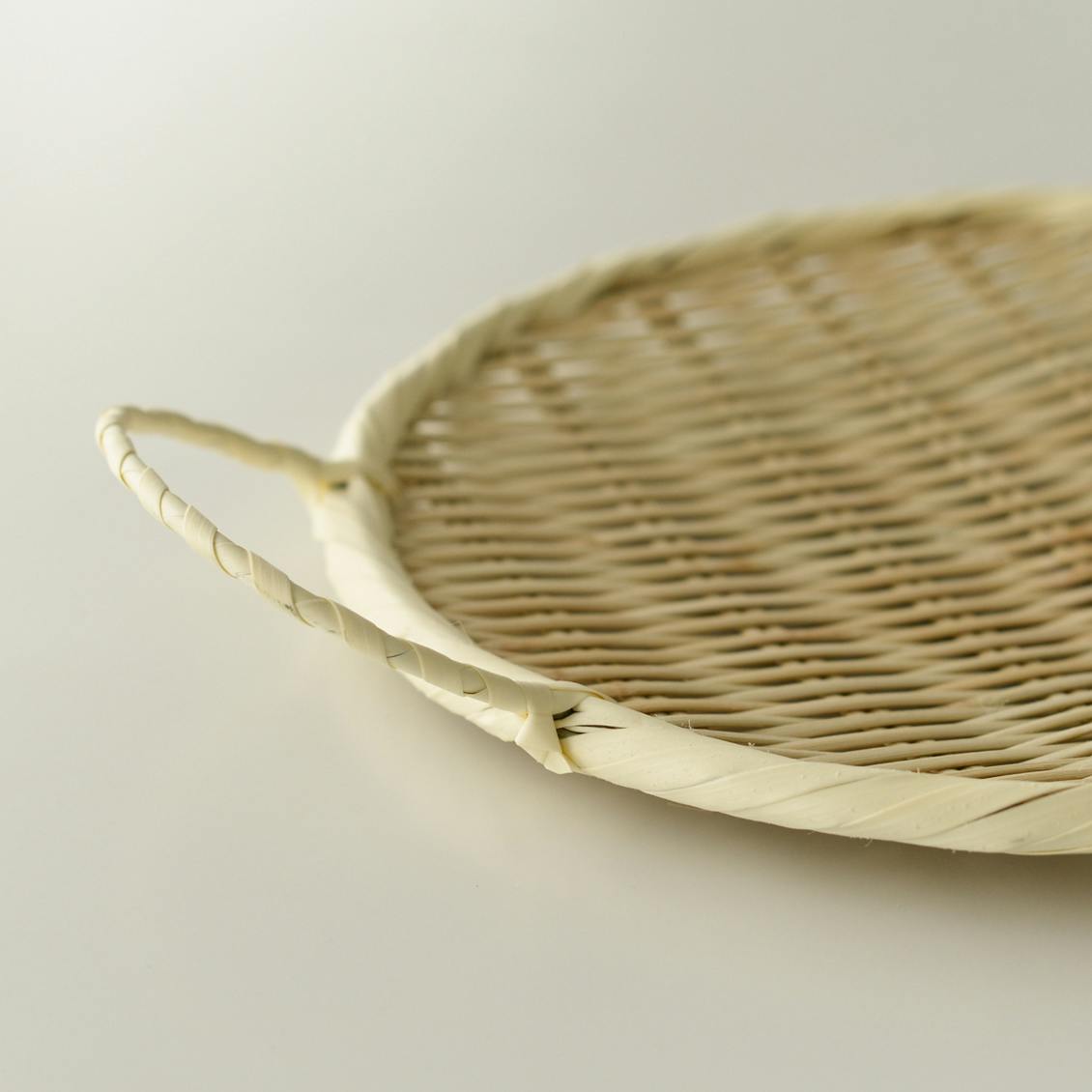 熟練の職人によって丁寧に編み込まれたざるを、野菜の水切りとしてキッチンで、盛り付け皿として卓上で、毎日のように活用ください。