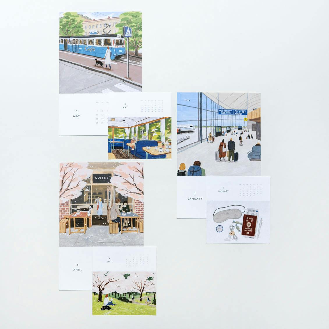 旅行の荷造り、路面電車の中でカフェを楽しめる「カフェトラム」の風景、クリスマスオーナメントなど、小池さんが実際に旅をしながら感じた高揚感や北欧の何気ない日常を写したイラストが12ヶ月を彩っています。
