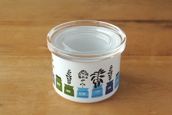 こちらのキッチンキャニスターは、楽しげなハーブ柄。