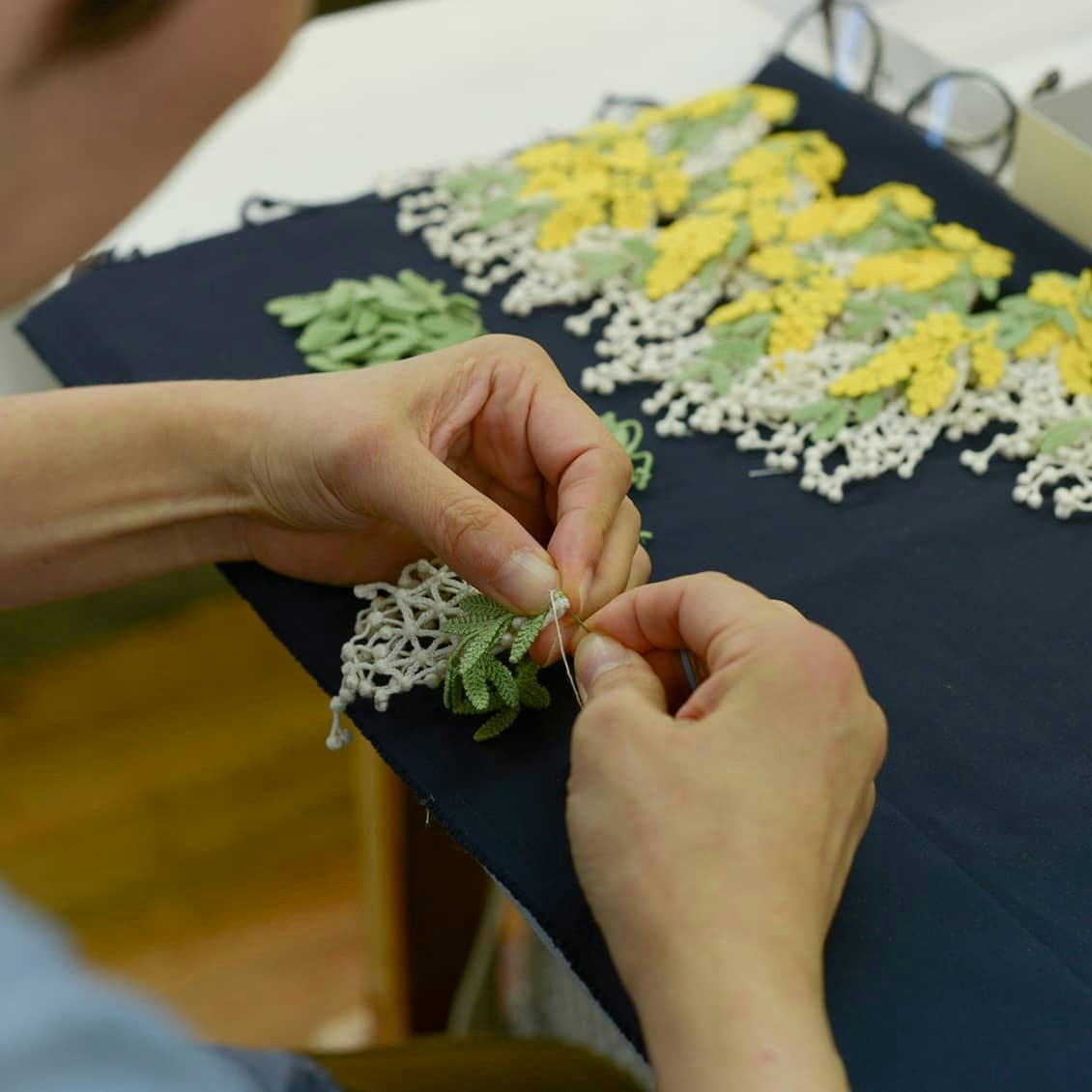 コサージュは「平刺繍」と「チェーン刺繍」という2種類の刺繍をするため、特殊なミシンを使用しているのだそうです。
