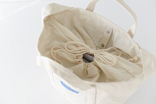 シンプルなトートバッグにブルーのロゴをひとつだけ。そんなさりげないオシャレが宿った日用品を探していました。