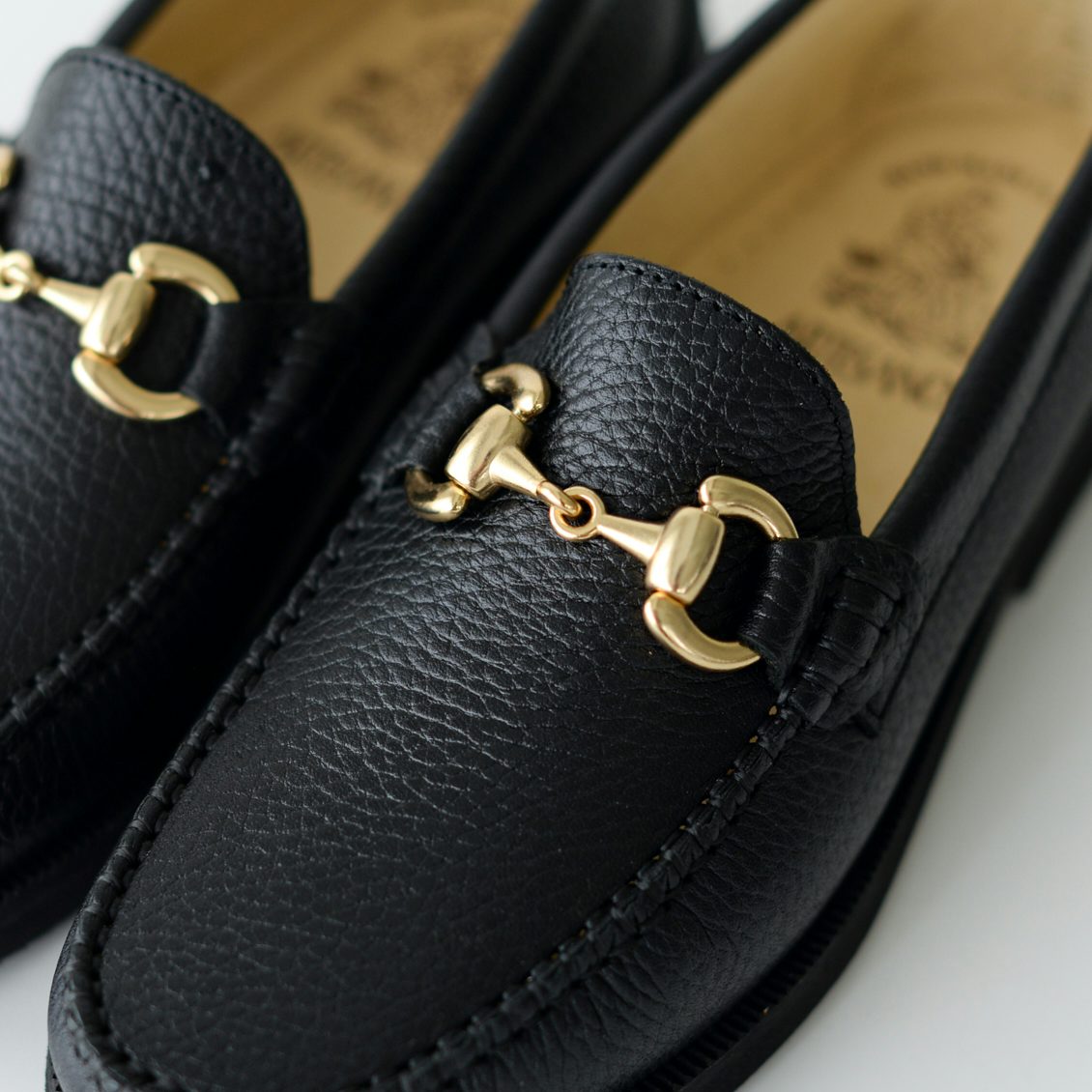 マニッシュな印象になりがちな革靴に女性らしさをプラスしてくれるのが、ゴールドのビット。カジュアルコーデの日にも、大人っぽいアクセントになるデザインです。