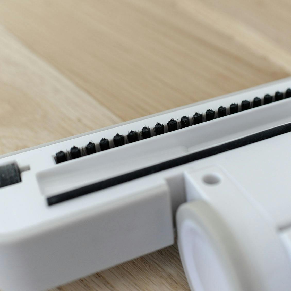 ヘッドの長さは22cm。可動域が広く、動かしたい方向にスルスル動かせます。ヘッドが後ろに90度倒れるので、床と平行に倒しやすく、ラック下などの狭い場所もストレスいらずで掃除できます。