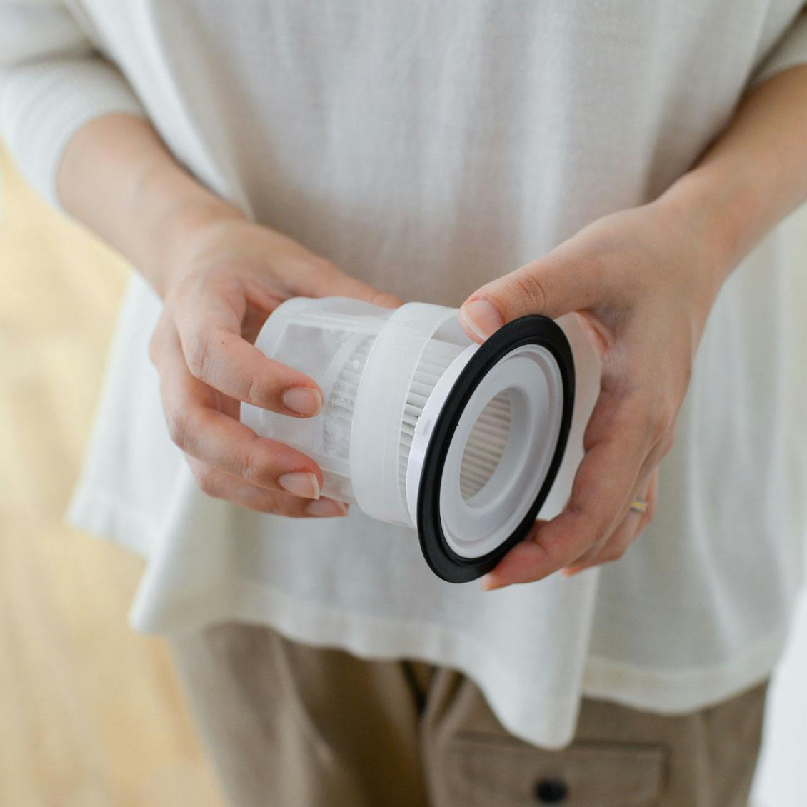 ゴミ捨ても、ダストカップから2層式のフィルターを外し、ゴミ箱に捨てるだけ。紙パックがいらないためお財布にも環境にもやさしい設計です。
