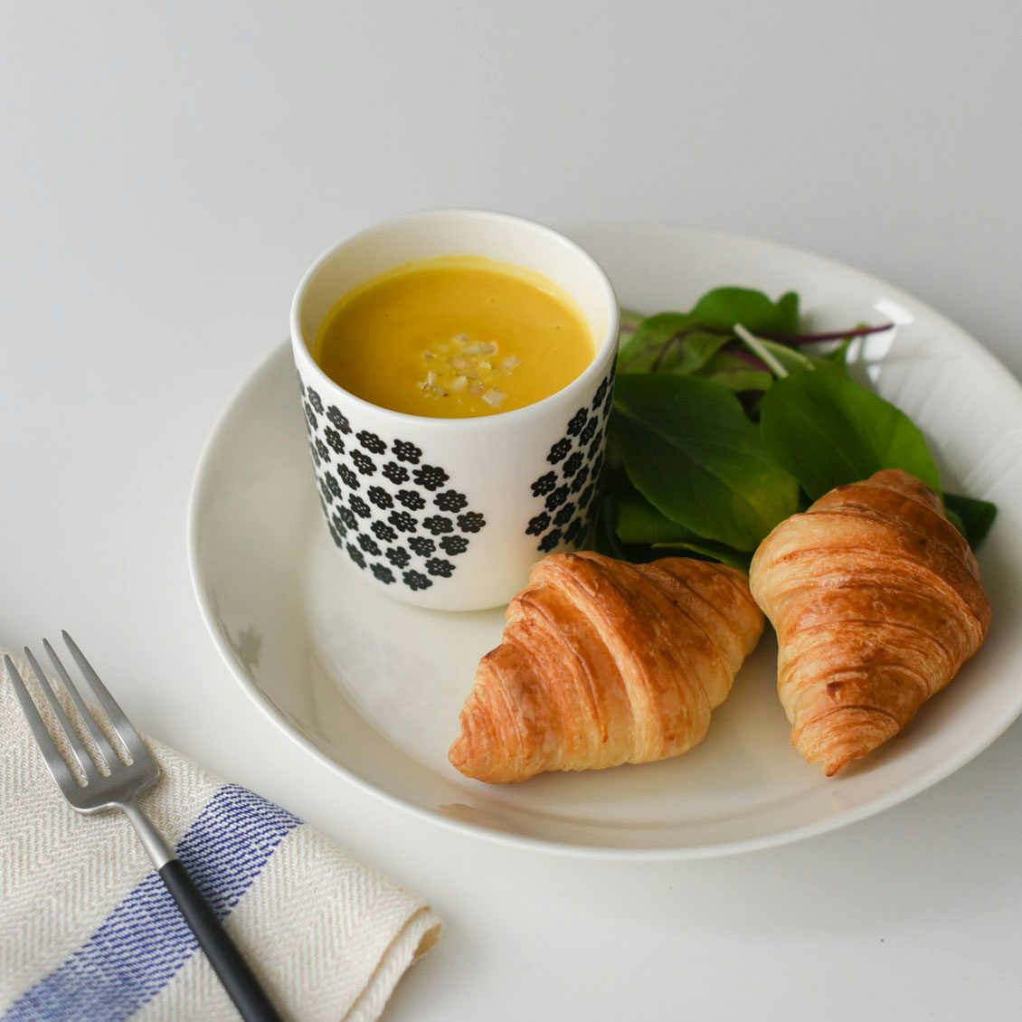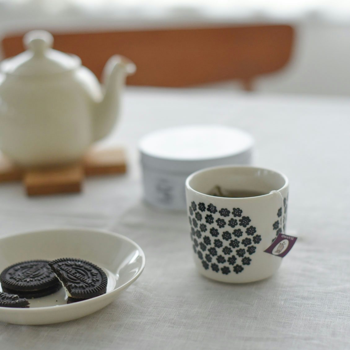色合いは極めてシンプルですが、柄に華やかさがあるので、食卓の風景に花を添えてくれます。