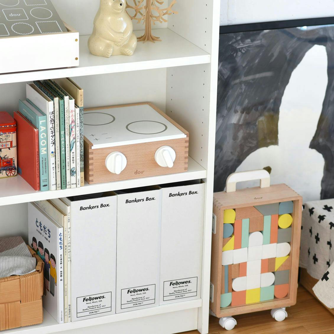 ビビットな色が多い子ども用のおもちゃ。よく遊ぶリビングに置いておきたいから、インテリアになじむ丁度良い見た目のものを探していました。